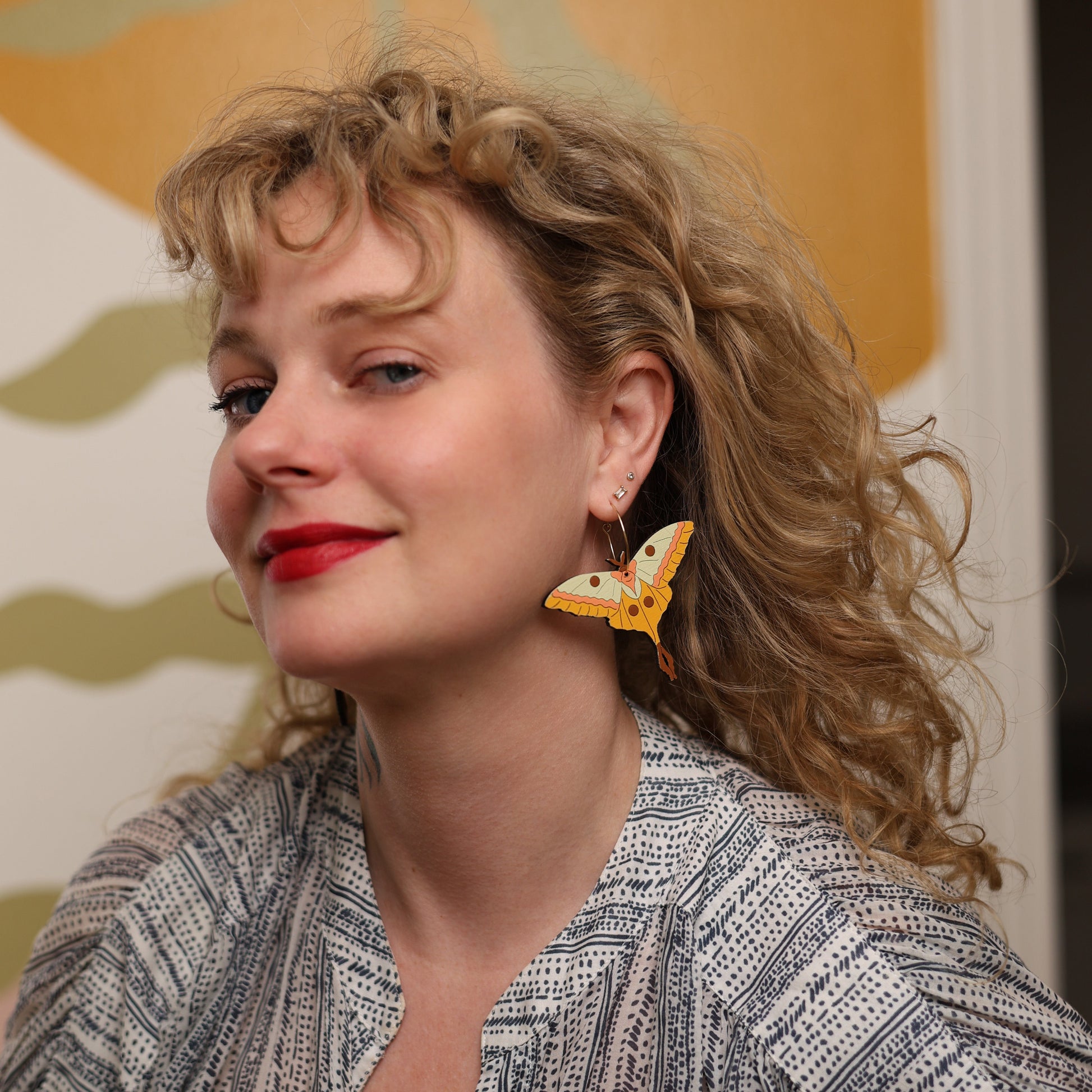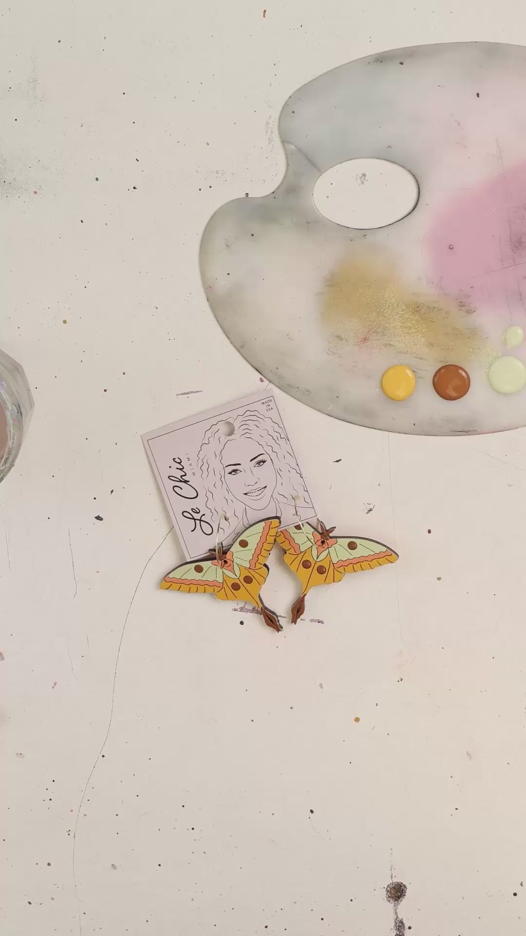 All our earrings are hand-painted on lightweight, sustainable Baltic Birchwood. Our metal findings are crafted from high-quality stainless steel and PVD plated with 18k gold, making them tarnish-free, hypoallergenic, and nickel-free.