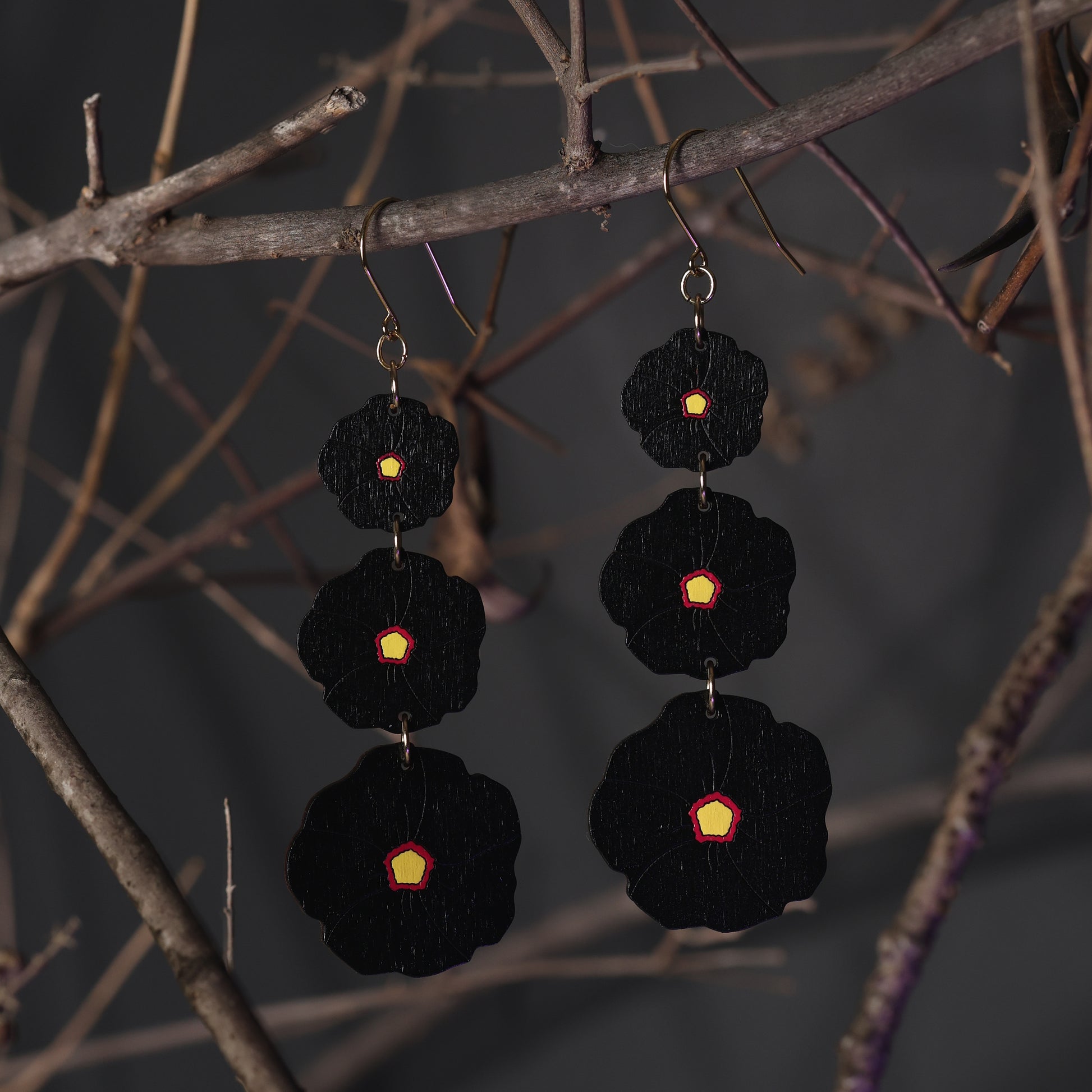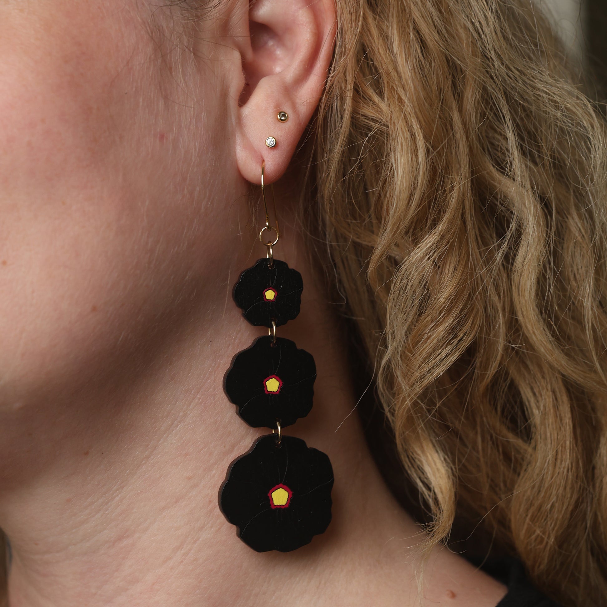 All our earrings are hand-painted on lightweight, sustainable Baltic Birchwood. Our metal findings are crafted from high-quality stainless steel and PVD plated with 18k gold, making them tarnish-free, hypoallergenic, and nickel-free.