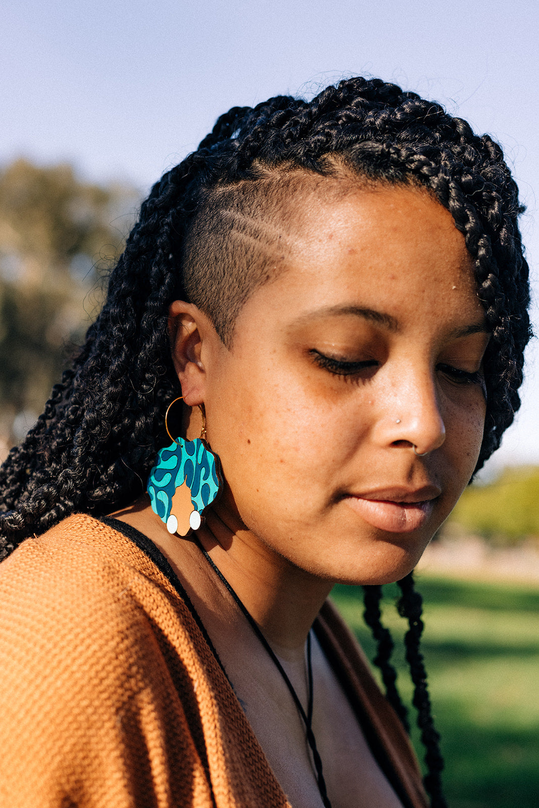 All our earrings are hand-painted on lightweight, sustainable Baltic Birchwood. Our metal findings are crafted from high-quality stainless steel and PVD plated with 18k gold, making them tarnish-free, hypoallergenic, and nickel-free.