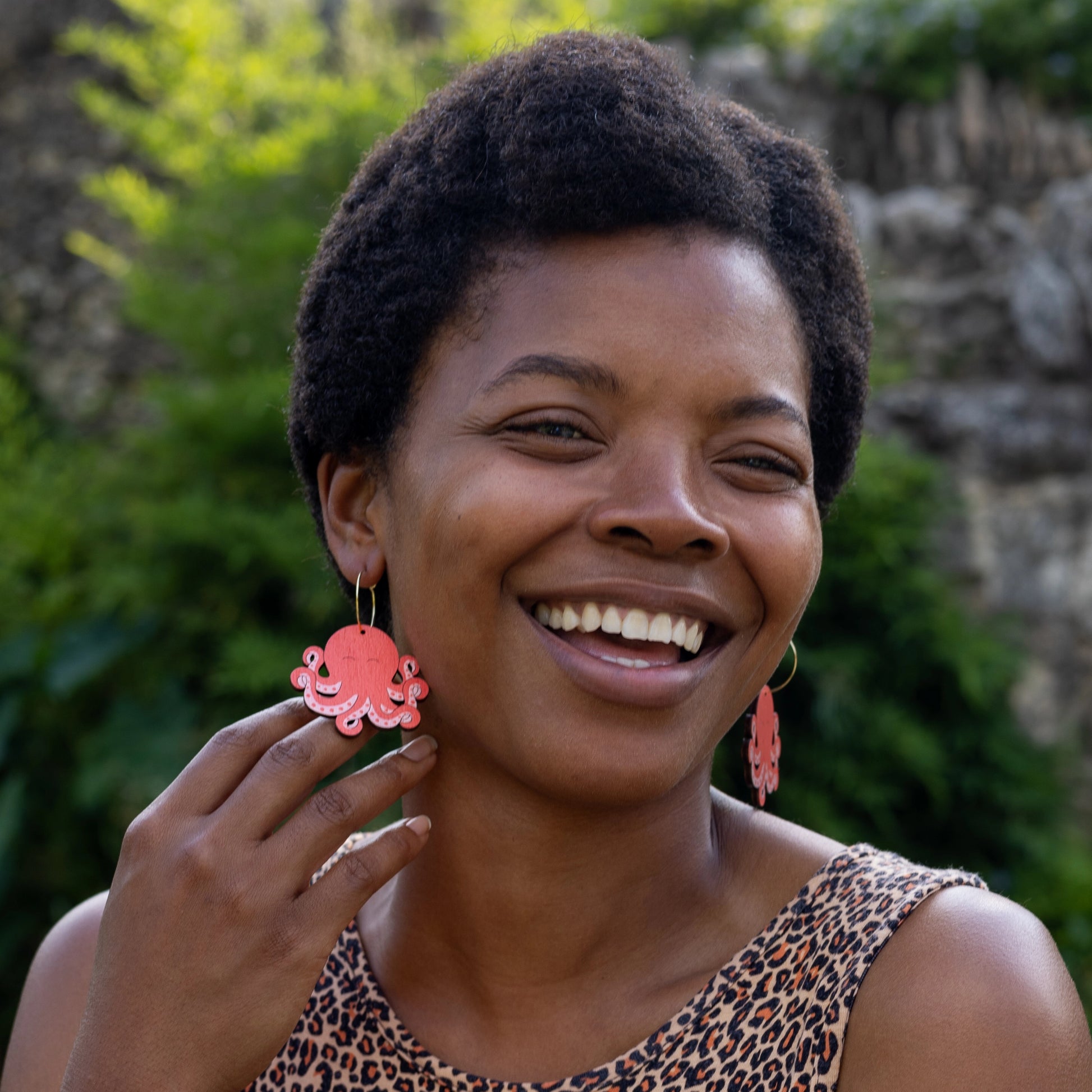 All our earrings are hand-painted on lightweight, sustainable Baltic Birchwood. Our metal findings are crafted from high-quality stainless steel and PVD plated with 18k gold, making them tarnish-free, hypoallergenic, and nickel-free.