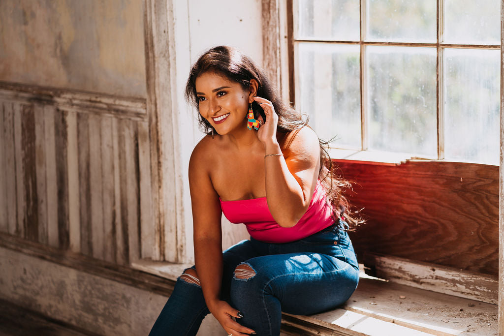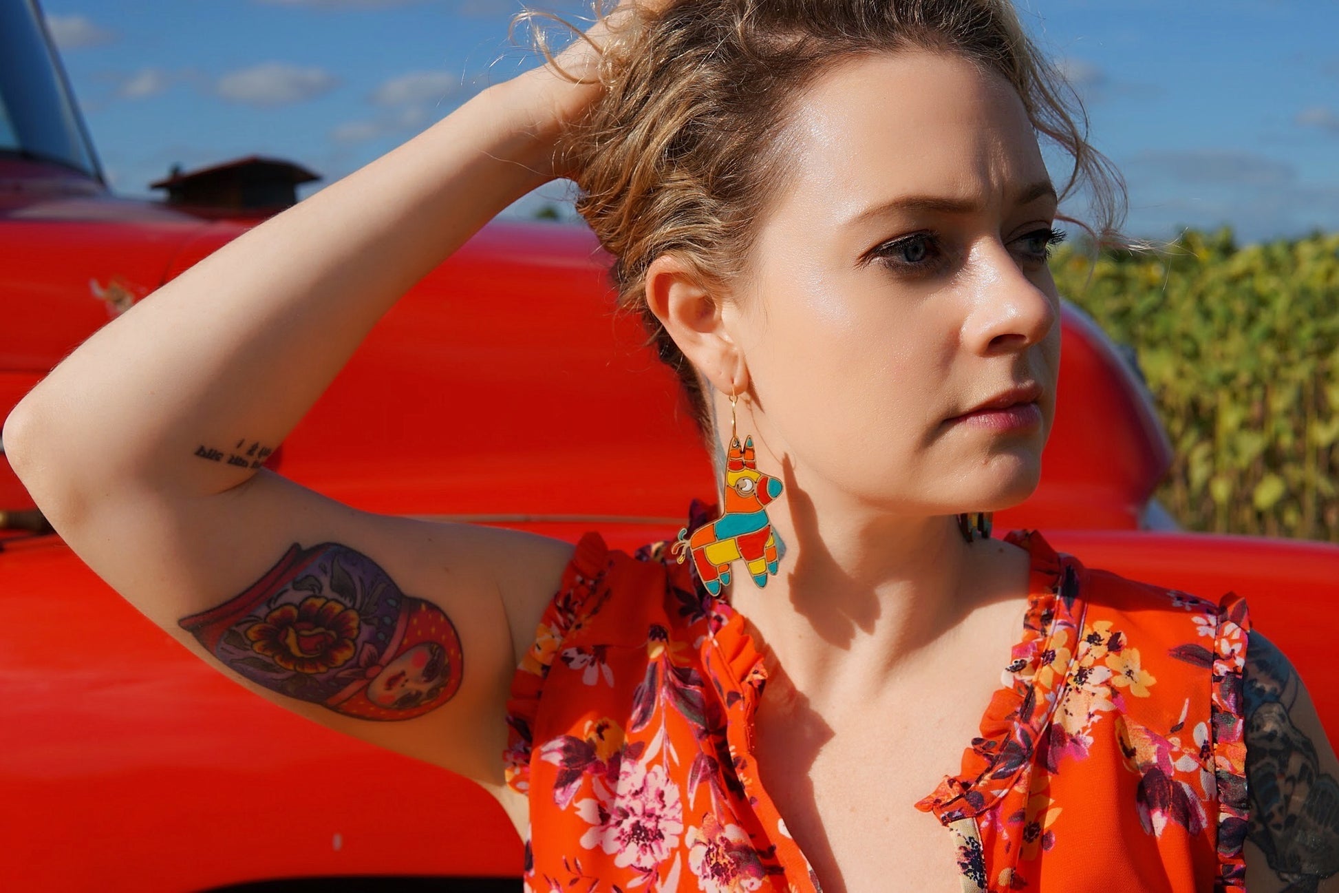 All our earrings are hand-painted on lightweight, sustainable Baltic Birchwood. Our metal findings are crafted from high-quality stainless steel and PVD plated with 18k gold, making them tarnish-free, hypoallergenic, and nickel-free.