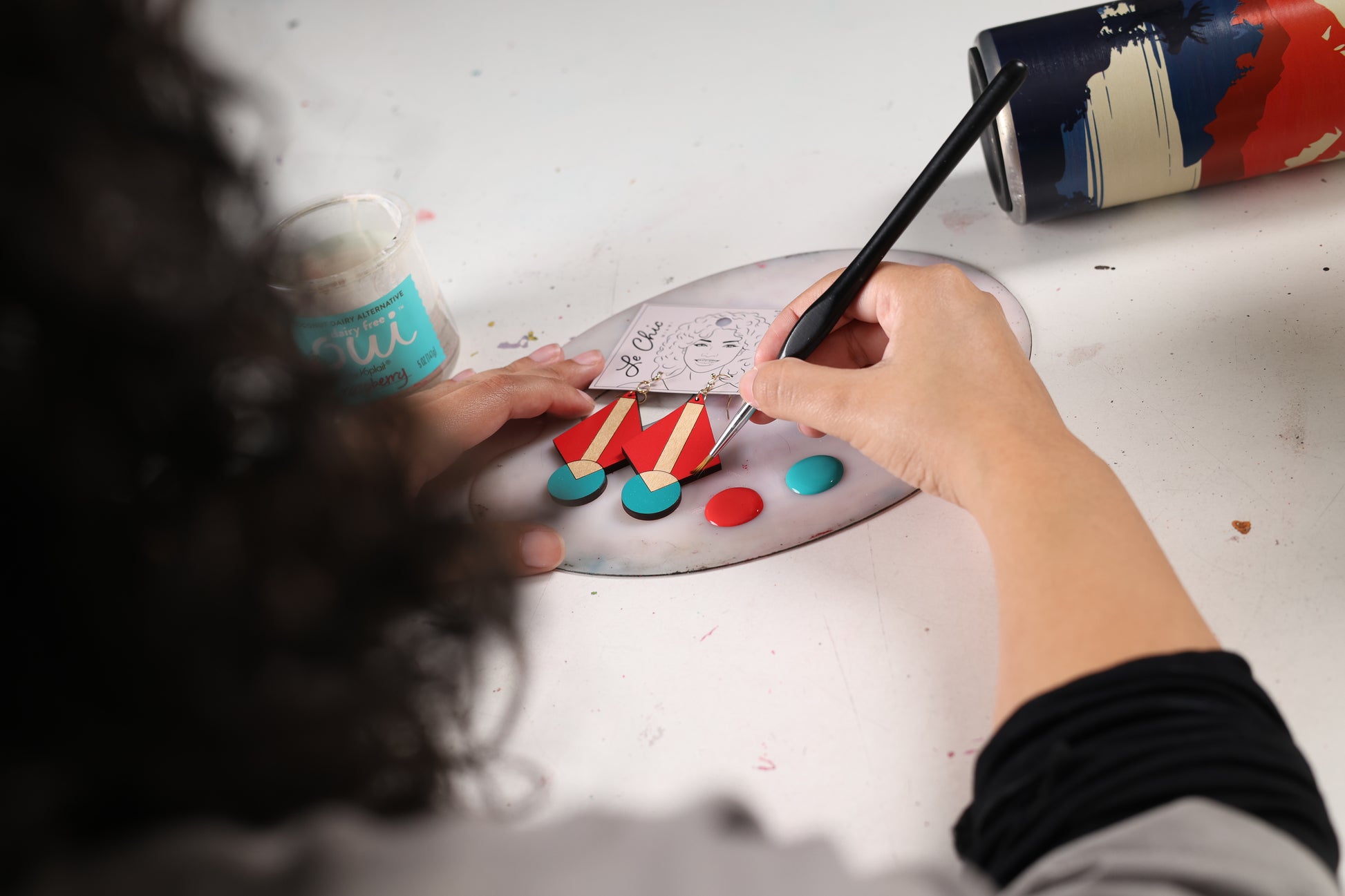 All our earrings are hand-painted on lightweight, sustainable Baltic Birchwood. Our metal findings are crafted from high-quality stainless steel and PVD plated with 18k gold, making them tarnish-free, hypoallergenic, and nickel-free.